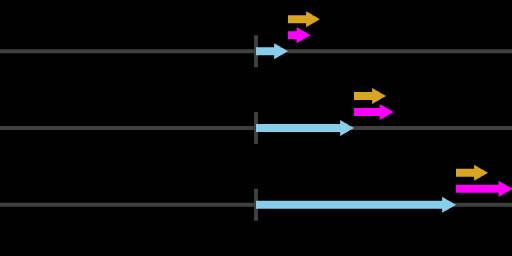 Almost there now. Starting from tmiss, we want to accelerate towards the target for half the remaining displacement Dmiss. Then we flip from the adjustment phase to the approach phase and accelerate away from the target for the last half. To convert the displacement to a duration, we divide by the acceleration and take the square root.